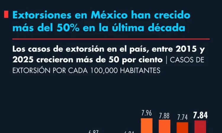 La incidencia de extorsión en México muestra un incremento sostenido en la última década, incluso posicionándose como uno de los delitos más comunes y registrados ante las autoridades.