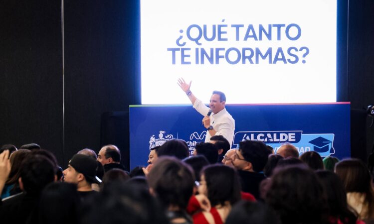En el marco del programa “Alcalde en tu Universidad”, el presidente municipal Marco Bonilla visitó la Facultad de Contaduría y Administración de la Universidad Autónoma de Chihuahua (UACH), donde dialogó con estudiantes sobre los retos de la política actual, los avances del Gobierno Municipal en materia de seguridad, desarrollo económico y educación, así como la importancia de que las y los jóvenes se involucren activamente en la toma de decisiones de la ciudad.