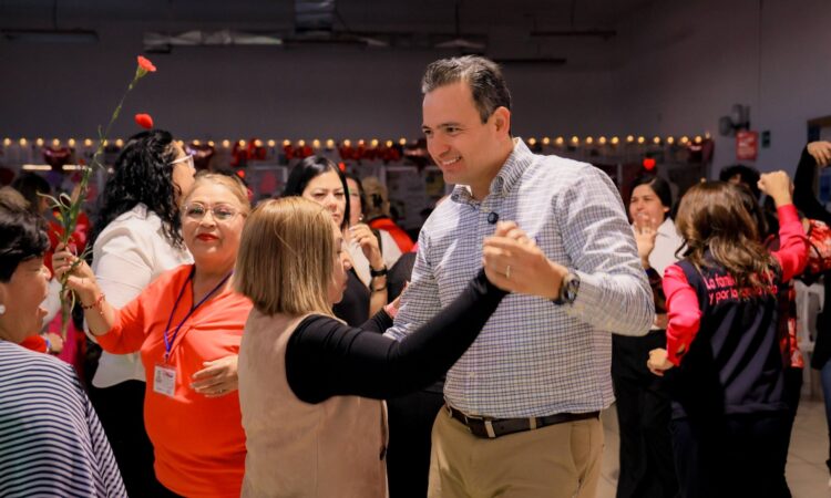 El alcalde de Chihuahua, Marco Bonilla, acompañado de su esposa Karina Olivas, presidenta del DIF Municipal, asistió al “Baile de Corazones” organizado en el Centro Comunitario de Ranchería Juárez, donde convivió con integrantes de los clubes del abuelo de la zona sur de la ciudad, quienes disfrutaron de una tarde llena de música, baile y celebración con motivo del Día de San Valentín.