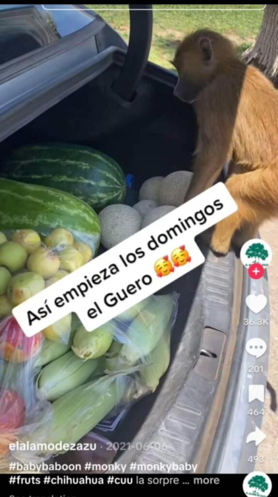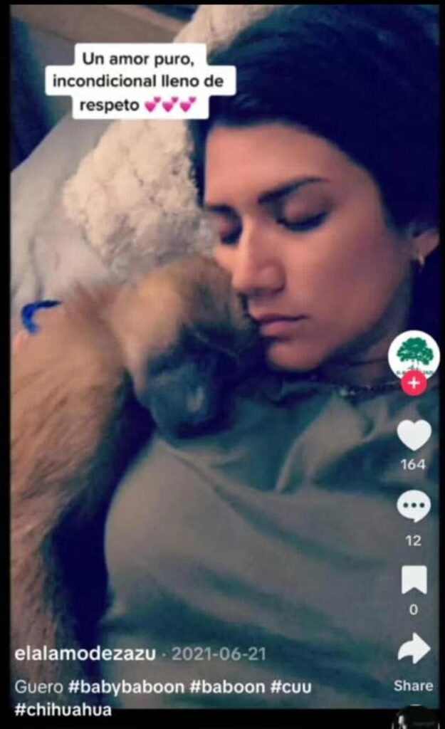 Las fotografías, compartidas originalmente en perfiles personales, muestran a la activista junto a ejemplares como mono araña, babuino, guacamaya verde e incluso felinos como panteras, tigres y hasta leones. En particular, se hace referencia a un mono araña identificado como “Zazu”, especie considerada en México en categoría de riesgo y cuya posesión, compra o venta puede constituir un delito ambiental con sanciones económicas y penales.