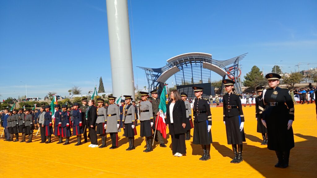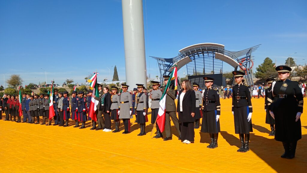 Autoridades estatales, mandos militares y representantes de distintos sectores participaron este martes en la ceremonia oficial por el Día de la Bandera, realizada en el Parque El Palomar, donde se llevaron a cabo los honores correspondientes al símbolo patrio.