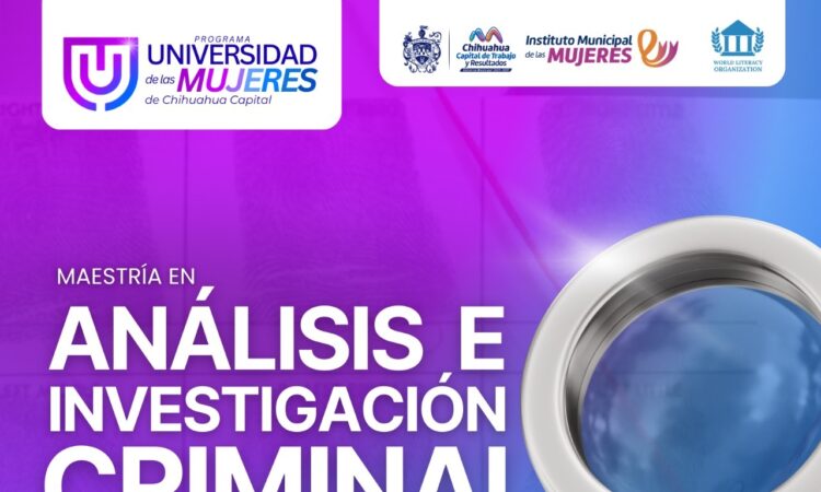 El Gobierno Municipal de Chihuahua, a través del Instituto Municipal de las Mujeres (IMM) y la Organización Mundial de Alfabetización (WLO), invitan a las mujeres del estado a profesionalizarse con la Maestría en Análisis e Investigación Criminal, que forma parte de la oferta académica del programa de Universidad de las Mujeres, con becas que permiten ampliar el acceso a estudios de posgrado de alta especialización.