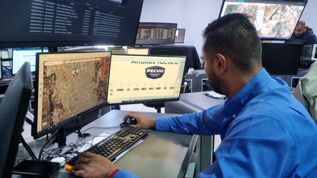 Una de las estrategias del Gobierno Municipal, implementada a través de la Dirección de Seguridad Pública Municipal, para brindar mayor seguridad a la comunidad chihuahuense es el uso de la tecnología de la Plataforma Escudo Chihuahua (PECUU), así como la coordinación interinstitucional, lo que permite acortar los tiempos de investigación de delitos y ofrecer resultados más rápidos.