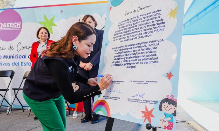 El Gobierno Municipal de Chihuahua, a del DIF, llevó a cabo la firma de un convenio de coordinación con Servicios Educativos del Estado de Chihuahua (SEECH), con el propósito de fortalecer la atención que se brinda a niñas y niños en los Centros de Desarrollo Integral Infantil (CDIIS) del municipio.