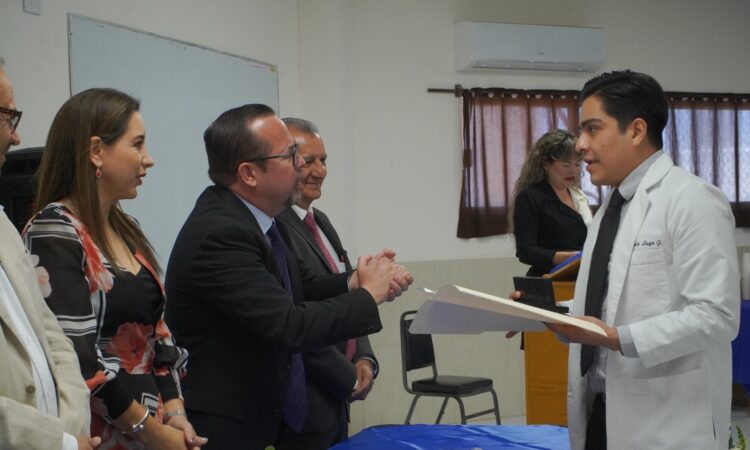 Los médicos Carlos Francisco Gaytán Carrera y Eduardo Lugo Jiménez obtuvieron sus respectivos títulos que los acreditan como especialistas en Psiquiatría, luego de concluir su residencia en el Hospital de Salud Mental “Dr. Ignacio González Estavillo”.