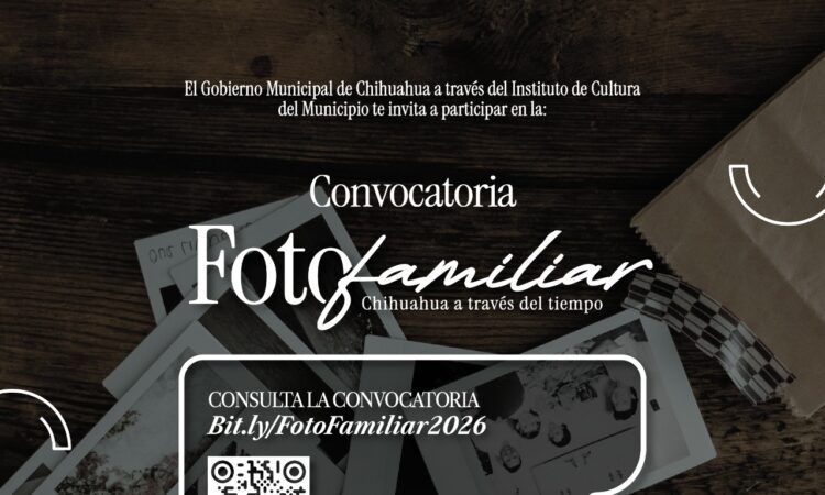 Chihuahua, Chih., a 10 de marzo del 2026.- El Gobierno Municipal de Chihuahua, a través del Instituto de Cultura del Municipio, invita a las familias chihuahuenses a participar en la convocatoria “Foto Familiar: Chihuahua a través del tiempo”, una iniciativa que busca rescatar y compartir las historias que viven en los álbumes familiares de la comunidad.