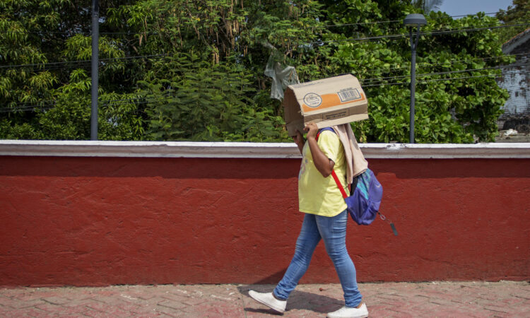MEX7755. TEHUANTEPEC (MÉXICO), 14/06/2023.- Una persona se cubre de los rayos del sol con un cartón hoy, en la ciudad de Tehuantepec (México). La ola del calor que actualmente se ha dejado sentir en México, prácticamente desde el inicio de junio, continuará en los próximos 10 a 15 días, informaron este miércoles científicos e investigadores de la Universidad Nacional Autónoma de México (UNAM). EFE/ Luis Villalobos