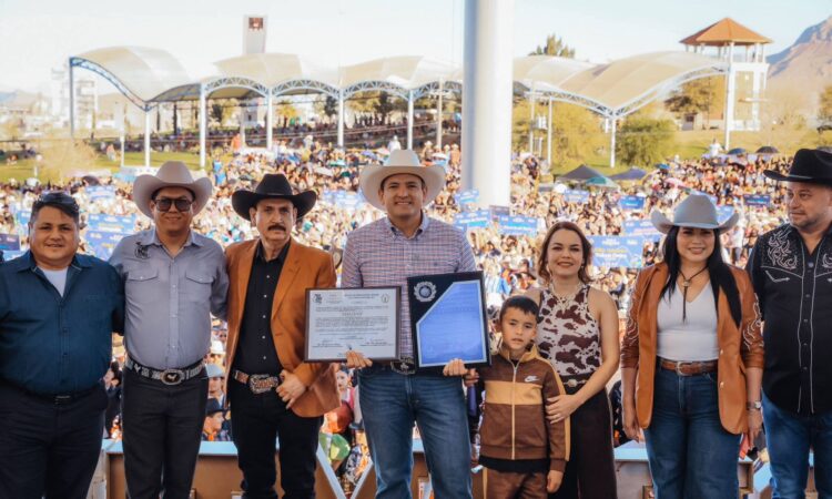 El alcalde Marco Bonilla recibió un premio mundial a nombre de Chihuahua Capital por el evento Polka Monumental edición 2026, que organiza el Gobierno Municipal, donde se rompió récord histórico al aglomerar a 3 mil 754 bailarines provenientes del estado de Chihuahua y de fuera, quienes interpretaron al mismo tiempo la canción de Aguas del Río Nonoava.