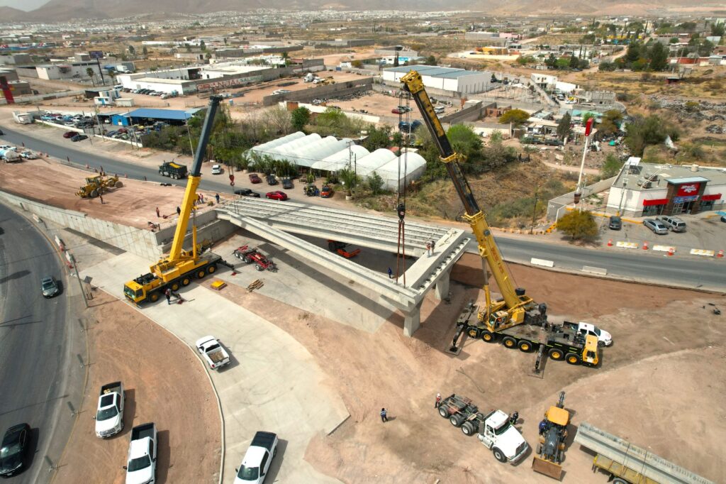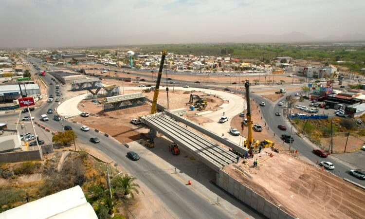 Con el firme objetivo de beneficiar a la zona oriente de Chihuahua Capital con mejores vías de acceso, el Gobierno Municipal, a través de la Dirección de Obras Públicas, llevó a cabo el montaje de las primeras trabes en el Paso Superior de la carretera Chihuahua–Aldama y avenida Fuerza Aérea, lo que significa un paso importante en el desarrollo de la superestructura.
