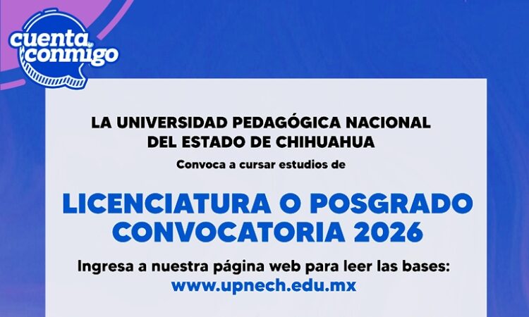 La Universidad Pedagógica Nacional del Estado de Chihuahua (UPNECH) anunció el inicio del periodo de entrega de fichas de nuevo ingreso, para cursar alguno de sus programas de Licenciatura o Posgrado.