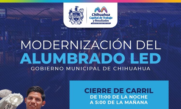 El Gobierno Municipal, a través de la Dirección de Mantenimiento Urbano, emite una alerta vial debido a trabajos de modernización del alumbrado público con tecnología LED, con el objetivo de mejorar la seguridad y visibilidad en importantes vialidades de la ciudad.