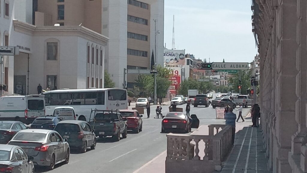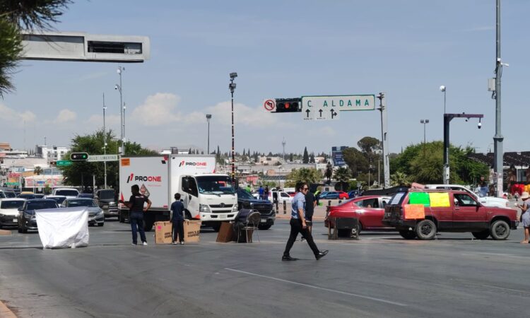 Vecinos de la colonia Ladrilleros y la ciudadana Dionisia Chaparro cerraron de nuevo el cruce de las calles Aldama y Vicente Guerrero, frente al Palacio de Gobierno.