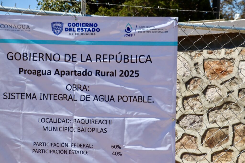 La Junta Central de Agua y Saneamiento (JCAS) entregó un sistema de agua potable a habitantes de Baquiriachi, municipio de Batopilas, como parte de las acciones para mejorar el acceso al recurso hídrico en zonas prioritarias de la entidad.