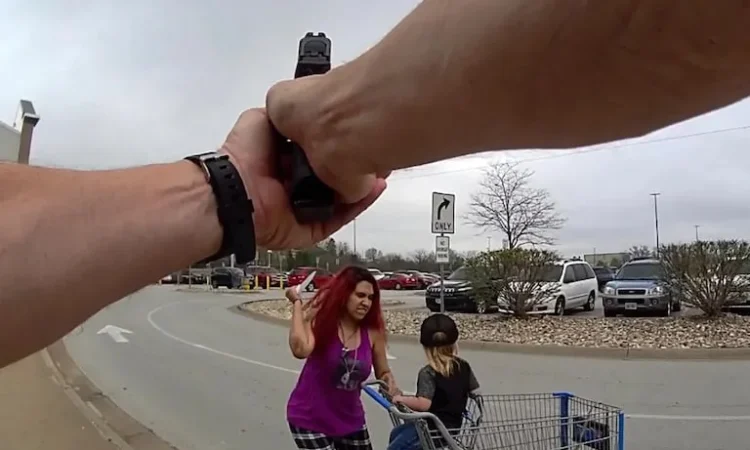 Tras recibir la llamada al 911, la policía llegó a las afueras de la tienda y detectó a la sospechosa con el niño sentado en un carro de compras. Tras la orden de que bajara el arma, que no fue obedecida, la mujer comenzó a atacar al niño con el cuchillo. En este marco, los agentes —uno de ellos el que llevaba la cámara en su pecho— dispararon varias veces hasta reducirla. La atacante, finalmente, murió en el lugar.