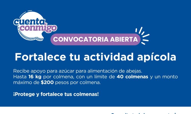 El monto máximo será de hasta 16 kilogramos de azúcar por colmena, con un límite de 40 colmenas por persona productora, y un subsidio de hasta 200 pesos por cada una.