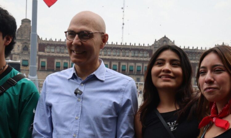 A pocas horas de su llegada, el funcionario de origen austríaco se presentó en el Centro Histórico de la capital para convivir con jóvenes mexicanos, con quienes intercambió perspectivas sobre la relevancia de los derechos humanos en la actualidad.
