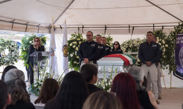 La gobernadora Maru Campos encabezó la ceremonia en que se rindieron honores a los elementos de la Agencia Estatal de Investigación (AEI), que fallecieron en un accidente automovilístico ocurrido el pasado fin de semana.