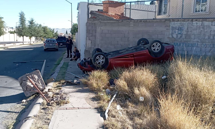 El automóvil, un Chevrolet Cruze, impactó primero contra la banqueta y posteriormente contra una luminaria, lo que ocasionó que terminara volcado sobre su toldo, con severos daños materiales.