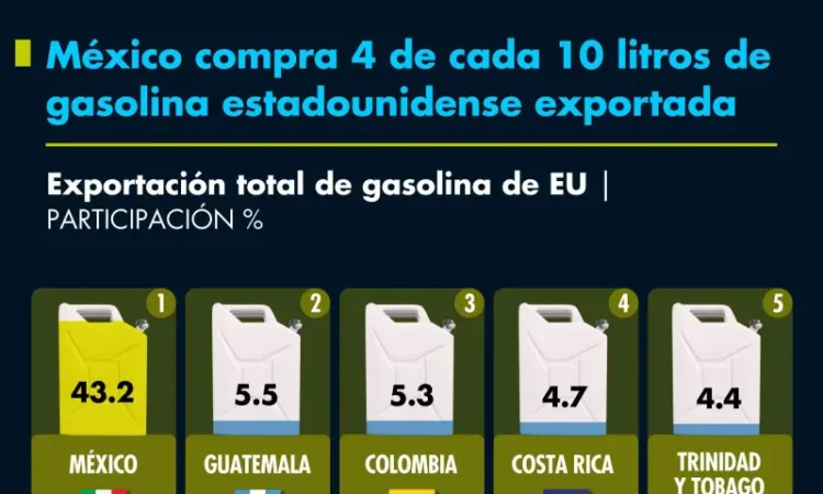 México se mantiene como el principal destino de las exportaciones de gasolina de Estados Unidos, concentrando más del 40% del total.