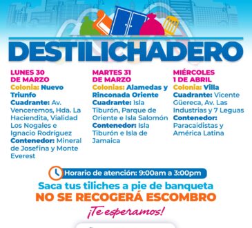 Aunado a ello, se realizan recorridos con perifoneo en los vehículos por los cuadrantes de las colonias que se visiten en la semana para retirar los tiliches, por lo que se pide que dejen estos desechos al pie de banqueta.