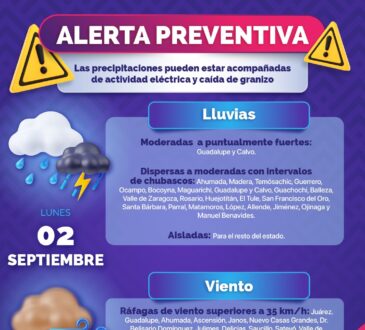 LocalRegistra Valle de Zaragoza mayor captación de lluvia con 45.6 mmRedacción Jr.1 año ago2 septiembre, 20241kLa Coordinación Estatal de Protección Civil (CEPC), informó que, con base en el reporte de la red de estaciones meteorológicas...