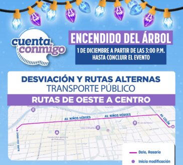 LocalAnuncia Subsecretaría de Transporte modificaciones en rutas con motivo del Encendido del Árbol.La redacción6 días ago29 noviembre, 2025319Este lunes 1 de diciembre los recorridos del centro de la ciudad cambiarán, desde las 3 de la tarde hasta concluir el evento