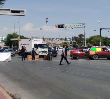Vecinos de la colonia Ladrilleros y la ciudadana Dionisia Chaparro cerraron de nuevo el cruce de las calles Aldama y Vicente Guerrero, frente al Palacio de Gobierno.