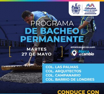 LocalConoce dónde intervendrá Municipio con bacheo este 27 de mayoMichelle Mtz6 meses ago27 mayo, 2025543El Gobierno Municipal seguirá en constante trabajo por mejorar las calles y avenidas de la ciudad de Chihuahua.