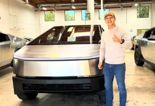 El boxeador mexicano, Jaime Munguía, tiene nueva carriola para “Jaimito”, un regalo que había pedido para Navidad, pero que llegó unos meses antes: un Tesla Cybertruck.