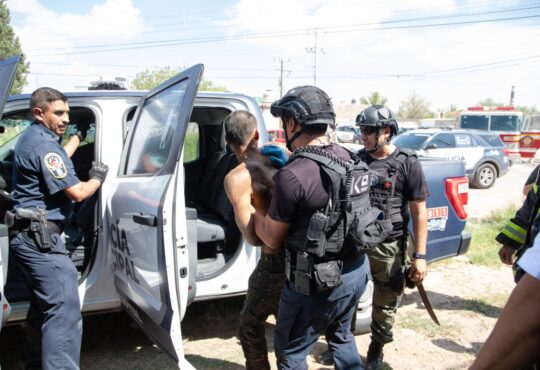 Elementos de la Policía Municipal apoyados por el equipo de Bomberos, lograron neutralizar a un hombre que, con machete en mano, amenazaba a los vecinos y les arrojaba objetos