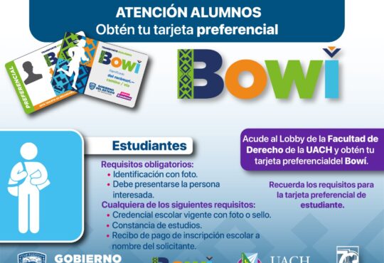 LocalOperará Módulo Temporal de Credencialización del Bowí en UACH Campus I.La redacción1 año ago17 septiembre, 2024719-Estará dispuesto en el lobby de la Facultad de Derecho de lunes a viernes, en un horario de 9:00 a.m. a 4:00 p.m.