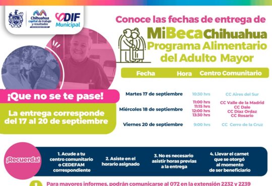 LocalInforma DIF Municipal lugares y fechas para entrega PAAM del 17 al 20 de septiembre.La redacción1 año ago17 septiembre, 2024906El DIF Municipal de Chihuahua, informa los centros comunitarios a los que podrán acudir