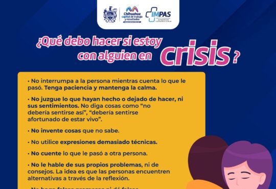 LocalEmite IMPAS recomendaciones para acompañar a una persona ante una crisis emocional.La redacción1 año ago14 septiembre, 20241kEl Gobierno Municipal cuenta con la “Línea de Atención a Crisis”, disponible las 24 horas del día los siete días de la semana
