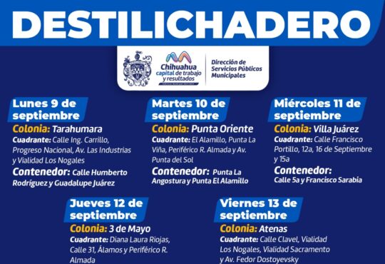 LocalVisitará Destilichadero 5 colonias del 9 al 13 de septiembre.La redacción1 año ago7 septiembre, 2024859El Destilichadero consiste en retirar basura de grandes dimensiones que el camión recolector no puede trasladar