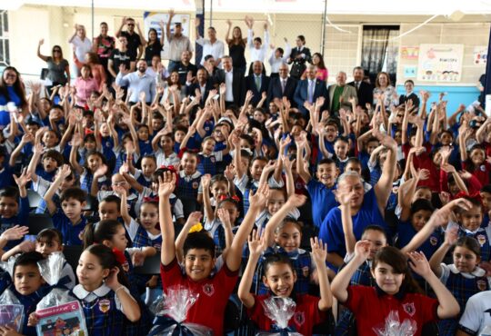 Las autoridades educativas entregaron de forma simbólica paquetes de útiles escolares, actividad que se extenderá en beneficio de 399 mil 716 alumnas y alumnos