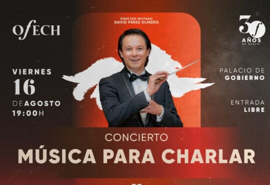FarandulaInvitan al primer concierto de la Temporada de Verano 2024 de la OFECh.La redacción1 año ago16 agosto, 20241.2kEl recital “Música para Charlar” será este viernes 16 a las 19:00 horas, en el Patio Central del Palacio de Gobierno