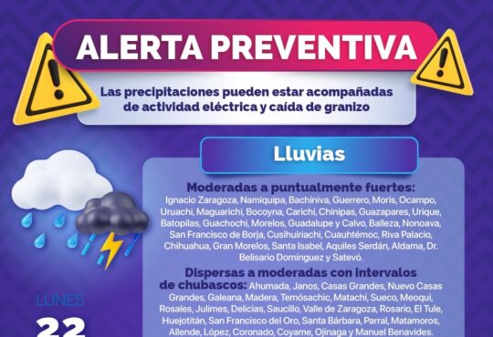 RegionalEmite Protección Civil alerta preventiva por lluvias en el estadoRedacción Jr.1 año ago22 julio, 2024965La Coordinación Estatal de Protección Civil (CEPC), emitió una alerta preventiva a la población chihuahuense ante el pronóstico de lluvias...