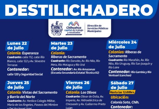 LocalEstará Destilichadero en cinco colonias del 22 al 27 de julio.La redacción1 año ago20 julio, 2024846Además visitará la zona rural en el seccional Colonia Soto