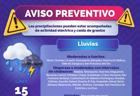 RegionalPrevé CEPC presencia de lluvias a partir de esta tarde-noche en la Sierra Tarahumara.La redacción1 año ago15 julio, 2024688Se espera que las precipitaciones se registren con mayor intensidad en localidades de Moris, Ocampo, Uruachi,