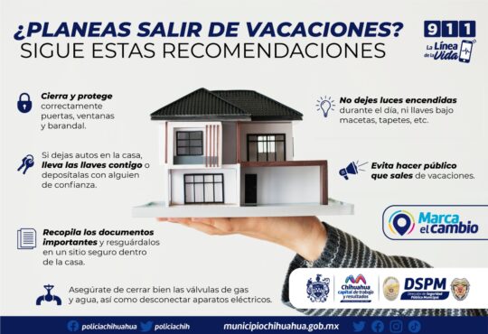 LocalSi dejas sola tu casa estas vacaciones, sigue estas recomendaciones de la Policía Municipal.La redacción1 año ago6 julio, 2024759Cuida tu patrimonio para evitar percances como robos o daños materiales