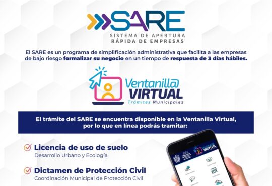 Local¿Vas a abrir un negocio? Invita Municipio a realizar los trámites en línea con la Ventanilla Virtual.La redacción2 años ago17 julio, 2024738El SARE es un programa que facilita a las empresas de bajo riesgo a formalizar su negocio en un tiempo de respuesta de tres días hábiles
