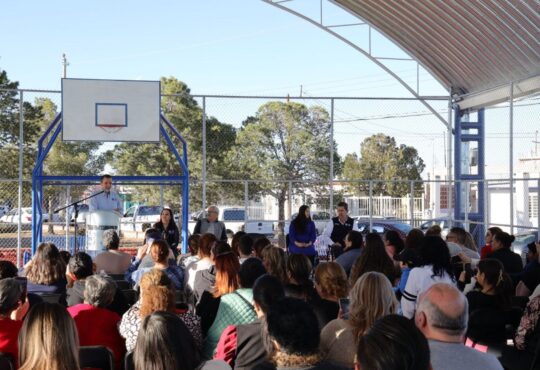 Tan solo en esta, indicó, las luminarias en el domo ayudan a que los niños, más los del turno vespertino, puedan disfrutar se esos espacios y en un ambiente seguro, gracias a la barda perimetral.