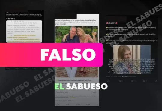 FarandulaJeffrey Epstein: desinformación sobre supuestos involucradosLa redacción2 años ago6 enero, 2024999Ni el cantante de Nirvana, Kurt Cobain, denunció los abusos de Epstein, ni una testigo denunció a Stephen Hawking.