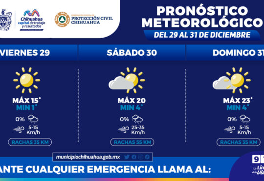 LocalContinuarán temperaturas gélidas este fin de semana: Protección Civil MunicipalRedacción Jr.2 años ago30 diciembre, 2023754El domingo se espera una máxima de 23°C y una mínima de 4°C, con un cielo soleado.