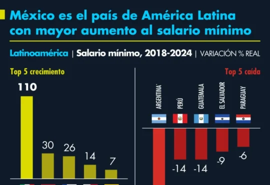 NacionalMéxico es el país de América Latina con mayor aumento al salario mínimoLa redacción2 años ago1kLa variación real para México es de 110%, mientras que Argentina presenta un retroceso de -44% en el mismo periodo.
