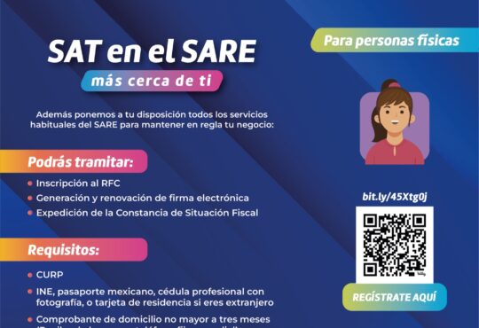 LocalTramita licencias y permisos para tu negocio con programa “SAT en el SARE”Michelle Mtz2 años ago8 diciembre, 2023781El Gobierno Municipal te invita este viernes 15 de diciembre de 9:00 a 14:45 horas en las oficinas del SARE_