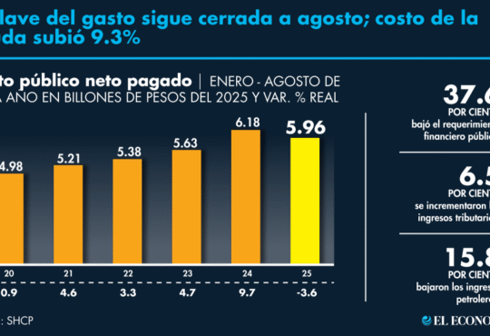NacionalLa llave del gasto continuó cerrada, mientras el costo financiero creció 9.3%.La redacción1 mes ago1 octubre, 2025990Los ingresos públicos fueron de 5 billones 379,968 millones de pesos, 2.6% más en comparación anual, pero 117,988 millones de pesos menos a lo estimado para el periodo.