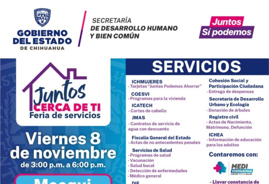 RegionalBeneficiarán a ciudadanía en Meoqui con la feria de servicios “Juntos Cerca de Ti”.La redacción1 año ago7 noviembre, 2024708Podrán acceder a más de 20 servicios este viernes 8 de noviembre a partir de las 3:00 de la tarde en la colonia Felipe Ángeles