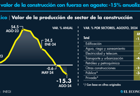 NacionalSe atizan señales de declive en la construcción.La redacción1 año ago25 octubre, 20241.4kEl valor de producción de las empresas constructoras cayó 15.3% en su comparación anual de la Encuesta Nacional de Empresas Constructoras.