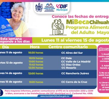 LocalAcude por tu paquete alimentario del PAAM del 11 al 15 de agosto.La redacción2 meses ago10 agosto, 2025539 DIF Municipal en calle Carbonel, No. 4106, frente al Club de Leones, de lunes a viernes en un horario de 9:00 am a 3:30 pm.